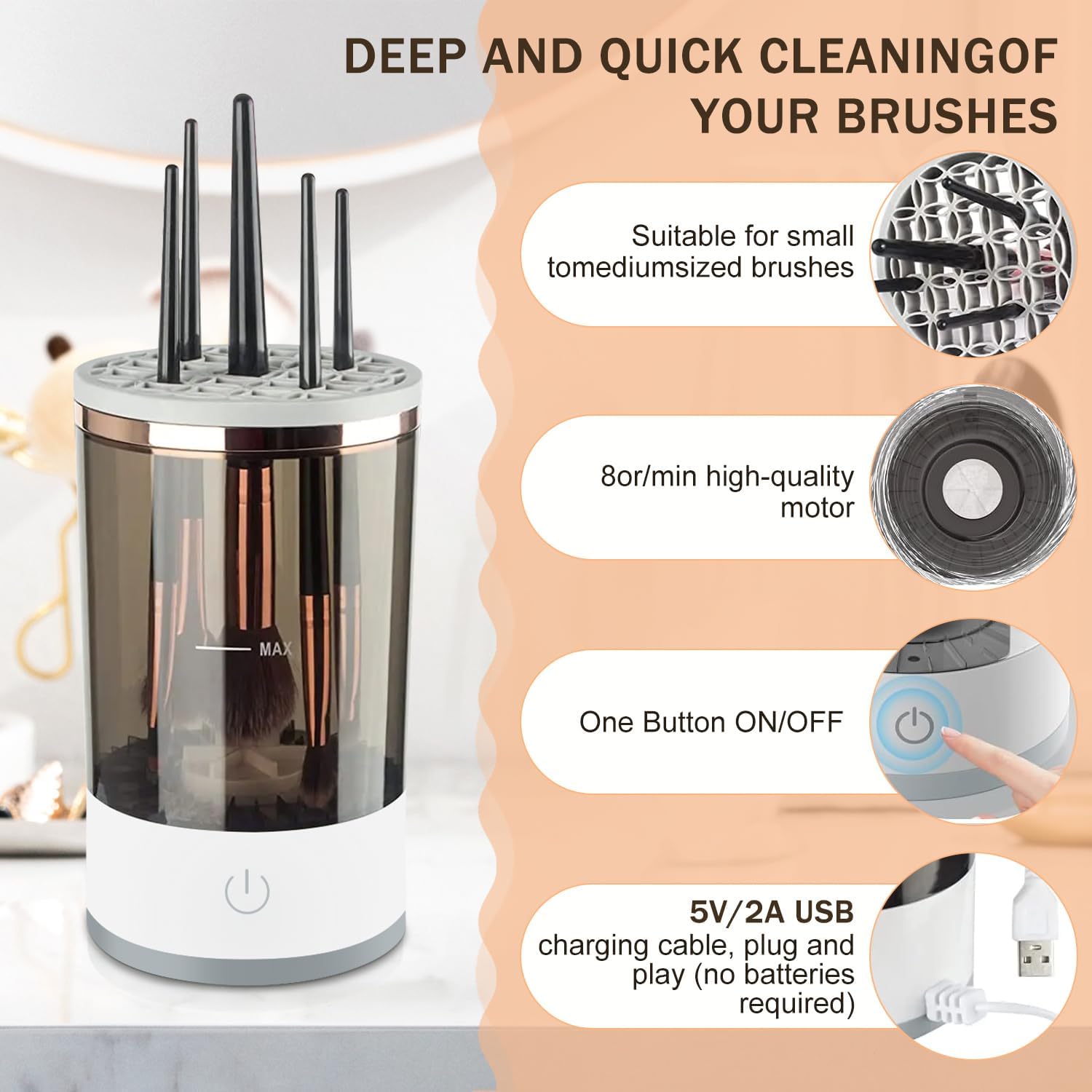 - Inserte las brochas de maquillaje en el portabrocas y presione el interruptor